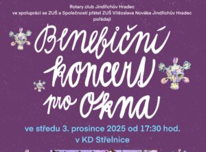 Ve středu 3. prosince 2025 v 17.30 hod. se koná v Divadelním sále KD Střelnice Benefiční koncert pro Sdružení Otevřená OKNA. Koncert spolupořádá Rotary Club Jindřichův