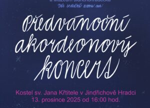 V sobotu 13. prosince 2025 v 16 hod. se uskuteční v kostele sv. Jana Křtitele Předvánoční akordeonový koncert současných a bývalých žáků ZUŠ Jindřichův Hradec ze