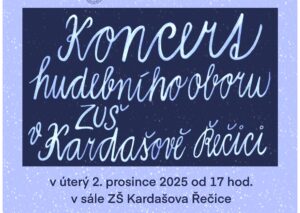 V úterý 2. prosince 2025 od 17 hod. proběhne v sále ZŠ Kardašova Řečice koncert žáků hudebního oboru.